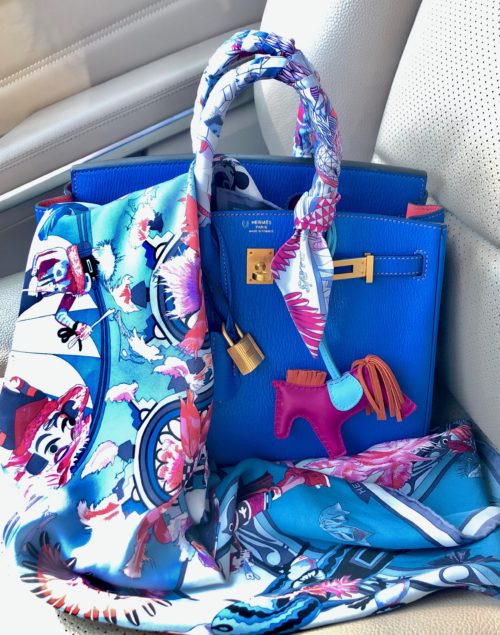A twilly falls under the umbrella of scarves, made with 100% silk. It is a long and noticeably narrow rectangular garment that goes around the neck. However, in some cases, it is also used as a headscarf, hairband or bag accessory.