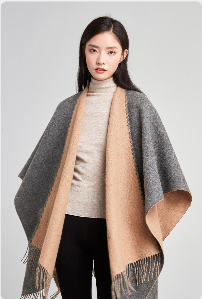 As the name suggests, the oversized scarf is a large piece of fabric placed around the neck while its two ends dangle in front of the wearer's torso.